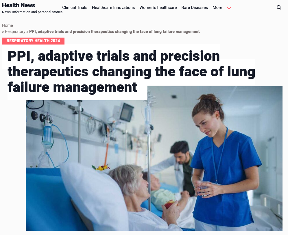 The ICC-CTN also featured in 2024 on an article on advancing innovation for ICU lung failure patients requiring mechanical ventilation by enhancing biological insights, conducting adaptive trials and involving patients and the public.